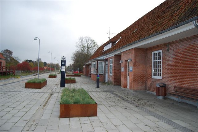 Plantekasserne på perronen foran stationsbygningen skal nudge ventende passagerer væk fra bygningen.