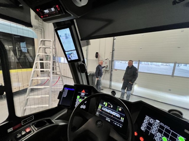 Der mangler ikke informationer til chaufføren på chaufførpladsen i Solarisbussen.(Foto: Solaris Danmark)