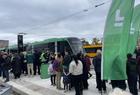 - Og så er letbanen grøn, ikke bare udenpå, sagde hun, inden hun og de andre inviterede steg om bord.