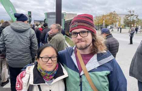 Alex Buylston og kæresten Linn ventede tålmodigt i den lange kø, af folk som ville køre med Letbanen. (Foto: Niels Bak Henriksen)