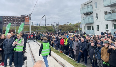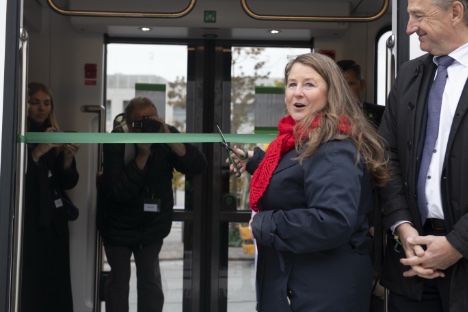 - Det er en historisk dag, sagde hun, inden hun klippede båndet, der var sat hen over togets døråbning, og som ikke var rødt, men grønt ligesom letbanetogenes bemaling.